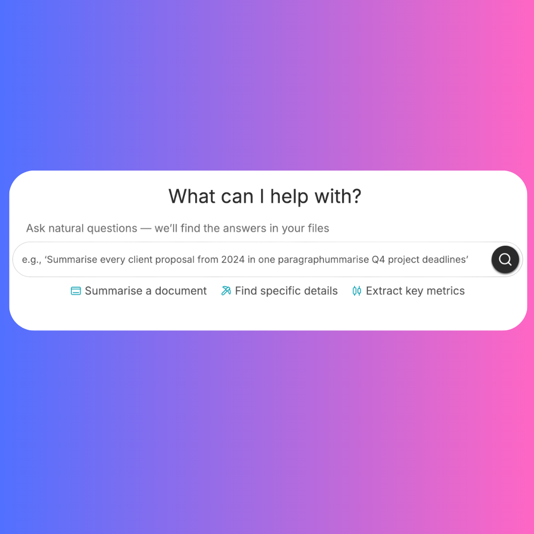 ⚡ Ask any question in plain English → get the exact doc, message or email in seconds.